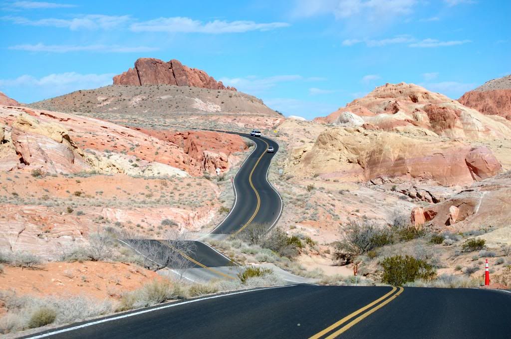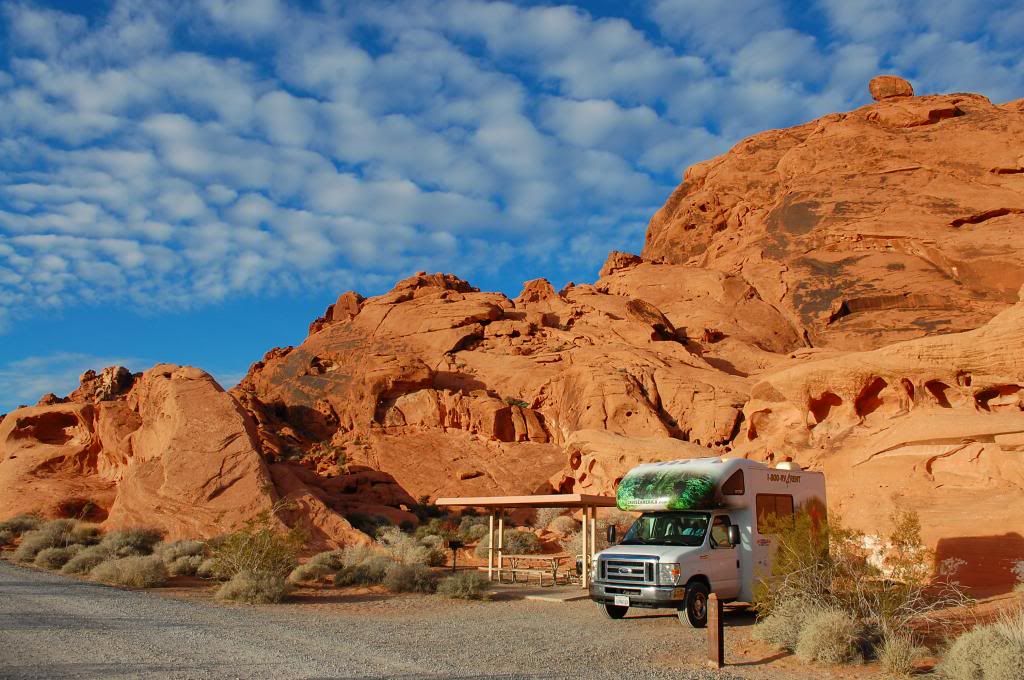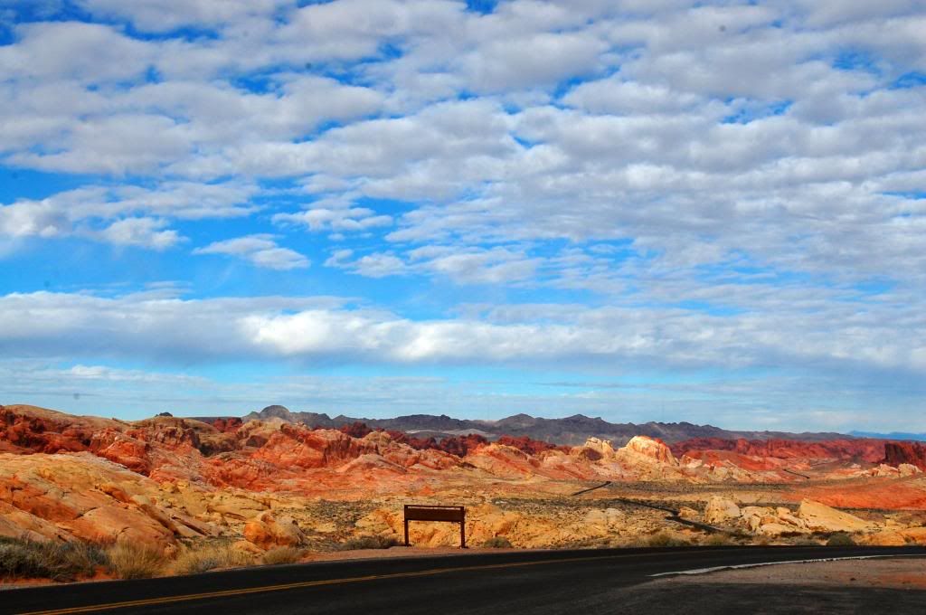 離開拉斯維加斯, 往東的沙漠裡開一個小時, 突然眼前出現一大片紅石頭,就是我們今晚要露營的Valley of Fire State Park.